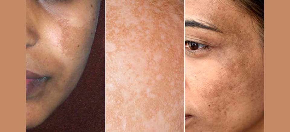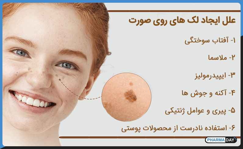- ملاسما: یک بیماری شایع پوستی که باعث ایجاد لک های قهوه ای یا خاکستری مایل به قهوه ای روی صورت می شود، معمولاً روی گونه ها، پیشانی و چانه. ملاسما اغلب با تغییرات هورمونی مرتبط است، مانند دوران بارداری یا مصرف قرص های ضد بارداری.