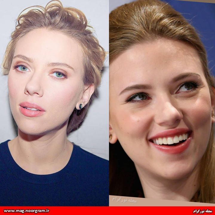 تصویر مقایسهای بینی اسکارلت جوهانسون در سالهای مختلف (برای حفظ حریم خصوصی، تصویر فرضی است).