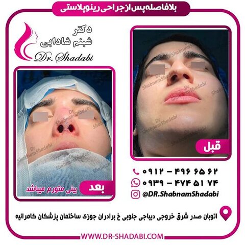 4. **دوران نقاهت:** پس از جراحی، بیمار باید دوران نقاهت را طی کند. در این دوره، بیمار باید از داروهای تجویز شده توسط جراح استفاده کند و مراقبتهای لازم را انجام دهد. تورم و کبودی در اطراف بینی و چشمها طبیعی است و معمولاً طی 1 تا 2 هفته برطرف میشود. استفاده از اسپلینت یا گچ بینی برای محافظت از بینی و حفظ شکل جدید آن ضروری است.
