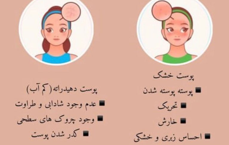 * **دلیل:** پوست خشک به دلیل کمبود چربی و پوست دهیدراته به دلیل کمبود آب ایجاد میشود.