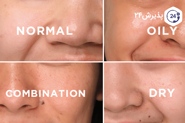 * **پوست مختلط (Combination Skin):** پوست مختلط ترکیبی از ویژگیهای پوست چرب و خشک است. معمولاً ناحیه T-Zone (پیشانی، بینی و چانه) چرب و گونهها خشک یا نرمال هستند. مراقبت از این نوع پوست نیازمند توجه ویژه به هر دو ناحیه و استفاده از محصولاتی متناسب با هر قسمت است.